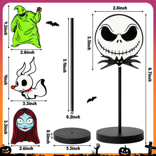 CZgfva 4Pcs Nightmare Sally Table Centerpiece Tall Standing Block Decor Zreo Dog Cartoon Horrible Themed Decor Halloween Christmas Rustic Wooden Tiered Tray Sign for Home Decor Photo Props