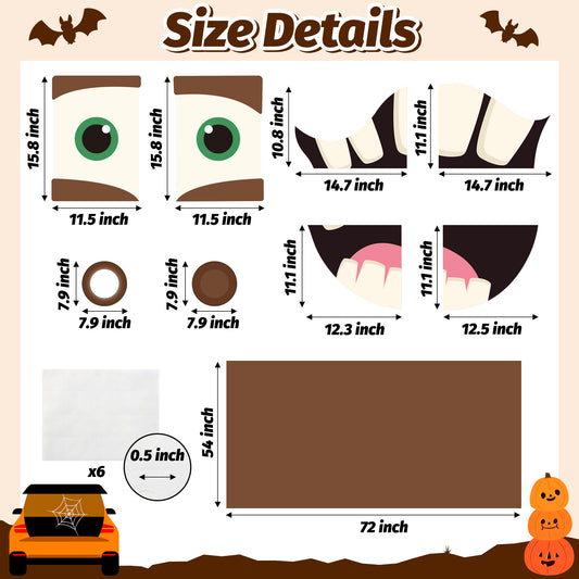 CZgfva 9Pcs Halloween Race Car Trunk or Treat Car Decorations Kit Brown Car Tablecover Large Eyes Mouth Face Race Car Theme Indoor Outdoor Decor Halloween Party Supplies for Car Garage Home Archway