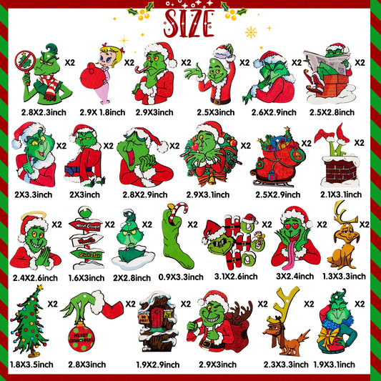 CZgfva 51Pcs Christmas Green Monster Wooden Hanging Ornament Green Monster Reindeer Cartoon Slices Cutout with Rope Whoville Decoration Hanging Tag Pendant for Christmas Tree Xmas Party Supplies Decor
